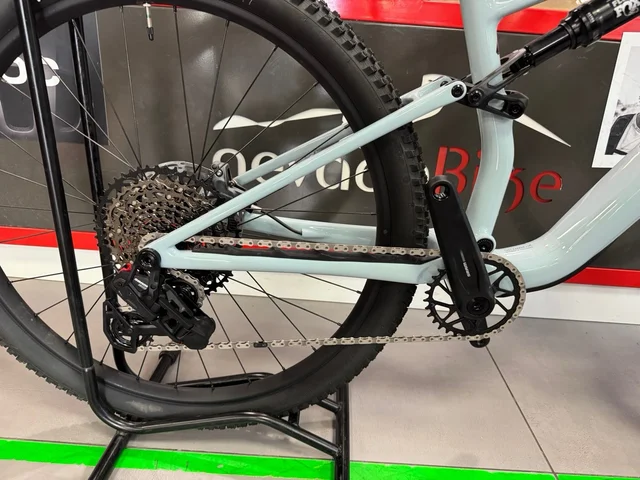 Equipada con suspensión Fox, transmisión electrónica SRAM AXS y frenos SRAM Code Bronze, esta bicicleta garantiza el máximo control y confianza en cualquier ruta o competición.